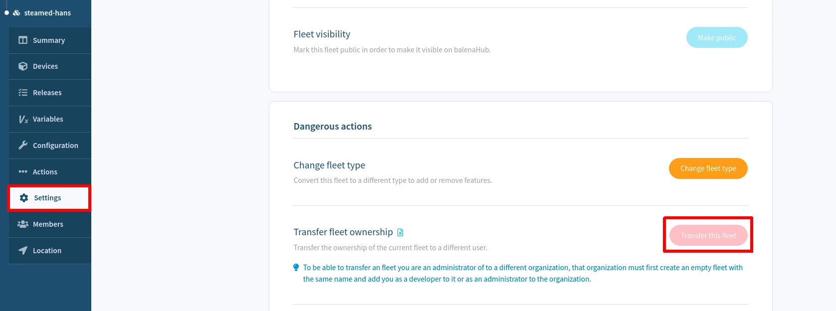Moving an existing fleet to an organization is a common task accomplished by [transferring ownership](https://docs.balena.io/manage/actions#transfer-fleet-ownership) of your fleet.