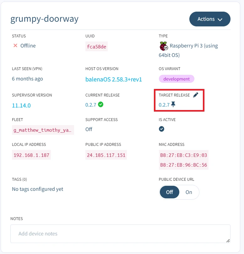 * Pin to a specific release: `balena device pin <DEVICE_UUID> <RELEASE_COMMIT>`