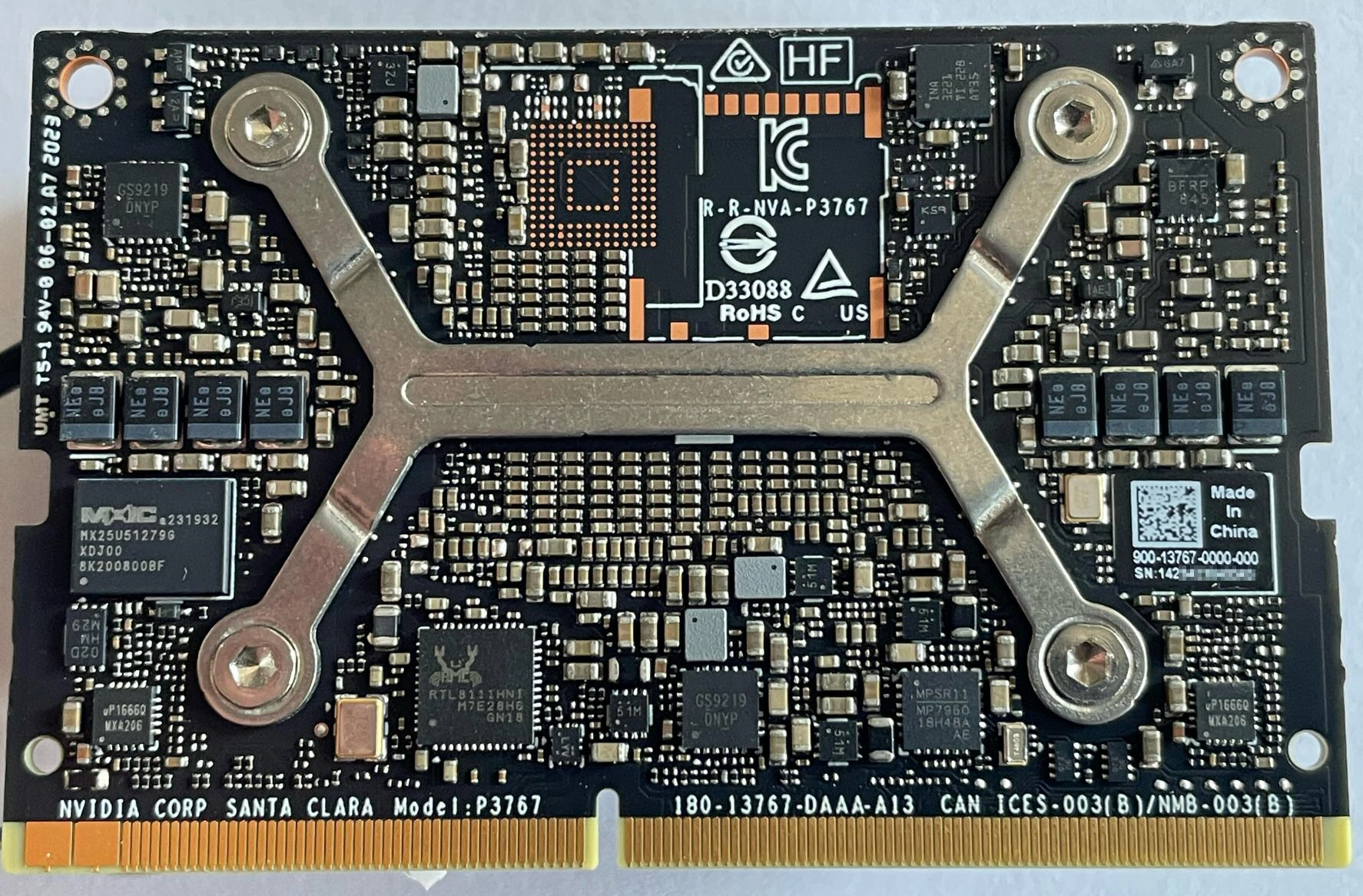 Part number 900-13767-0000-000 is printed on the right side of the SOM bottom side, and can only be observed if the module is taken out of the devkit: