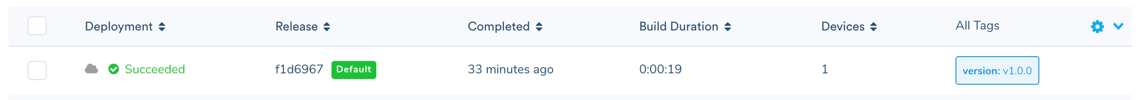 Using release tags, we can identify releases by something other than a commit hash or release ID. For example, let's update our fleet and give the latest release a version:v1.0.0 tag.