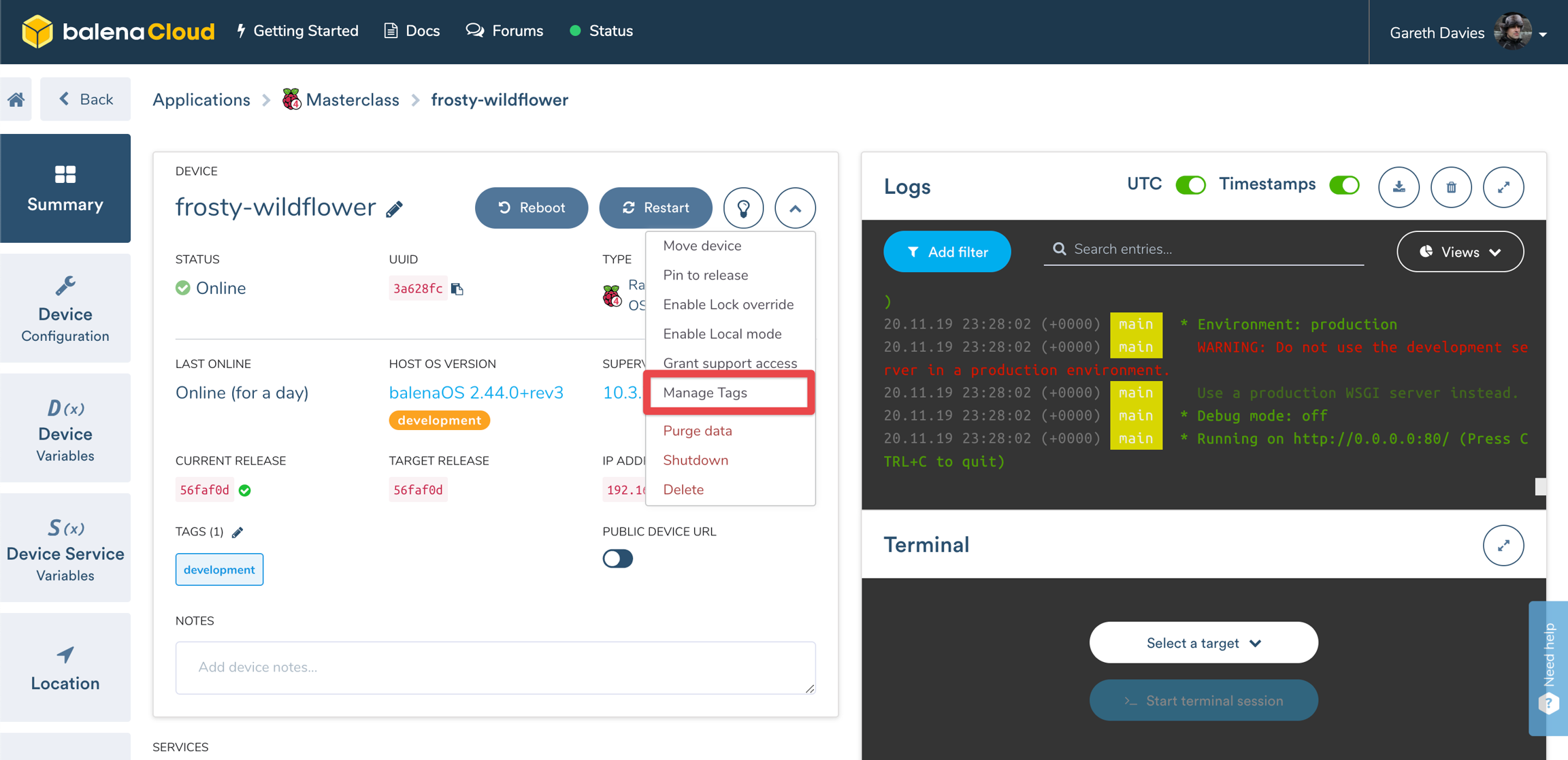 A locally cloned copy of this repository Balena Fleet Management Masterclass. Either: